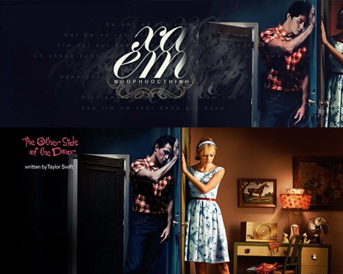 | Bìa single Xa em của Noo Phước Thịnh bị nghi "đạo" hình ảnh của Taylor Swift trong single The Other Side Of The Door của cô. |