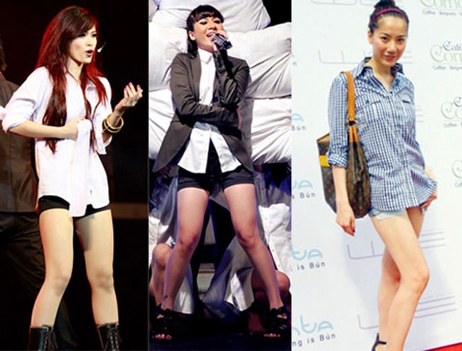 3 cách kết hợp hợp lý giữa áo sơ mi kín đáo giúp làm giảm sự sexy thái quá vì chiếc quần short ngắn của Đông Nhi, Tina Tình và Chung Thục Quyên