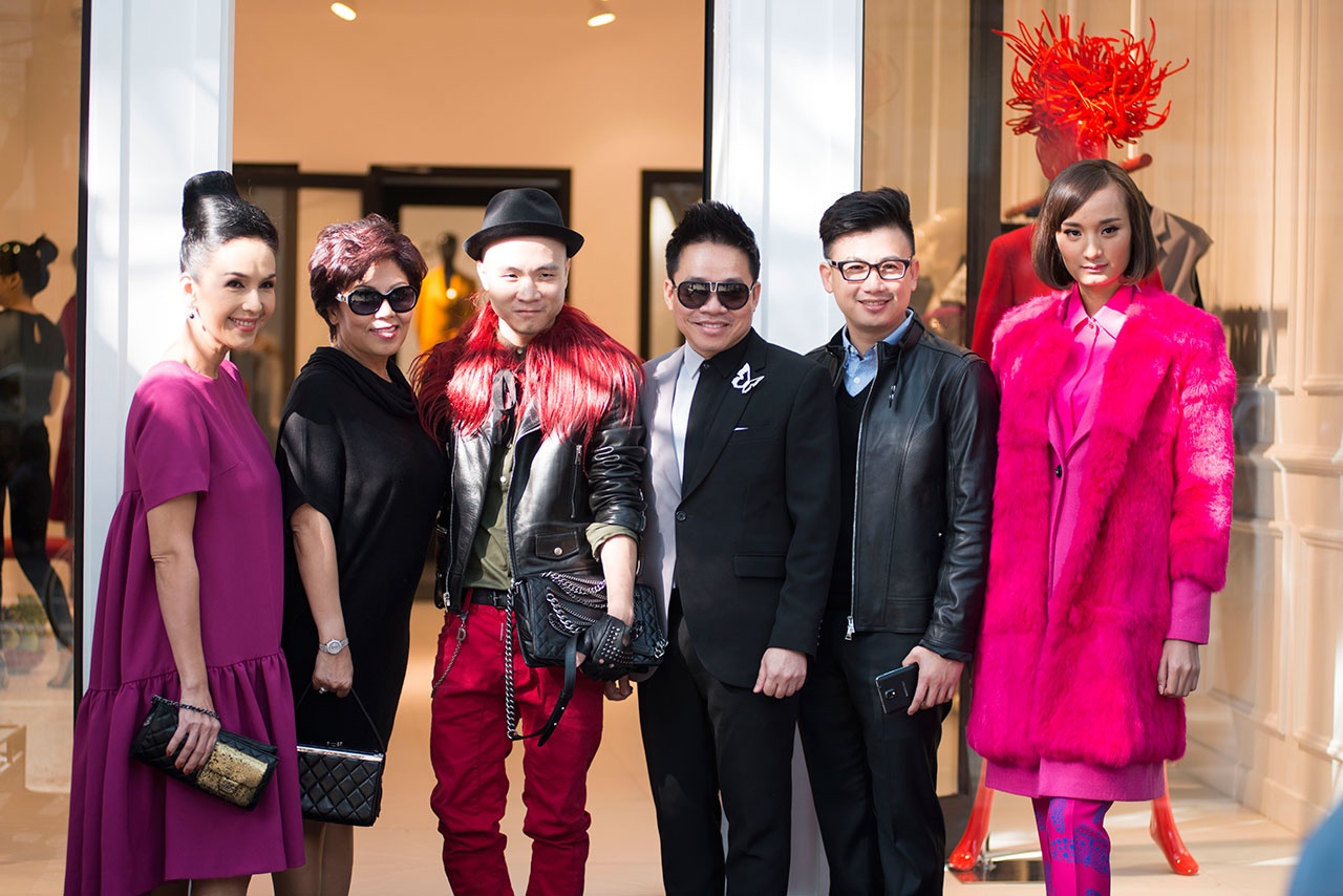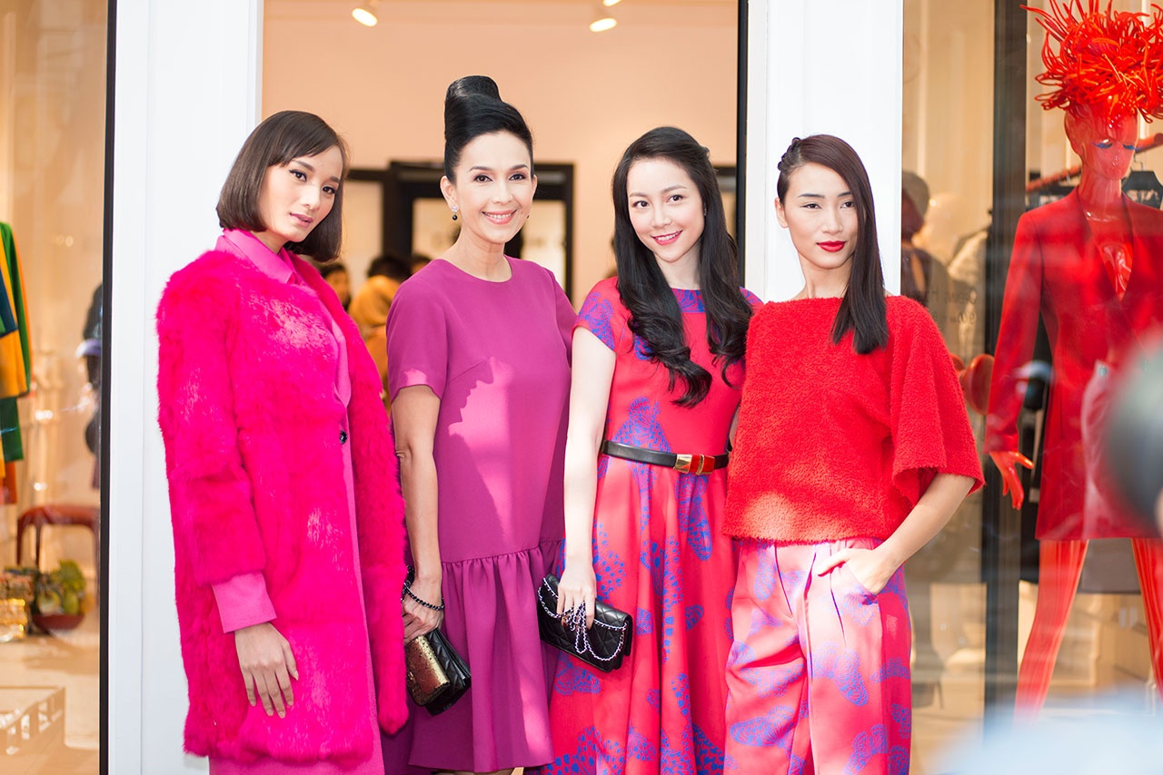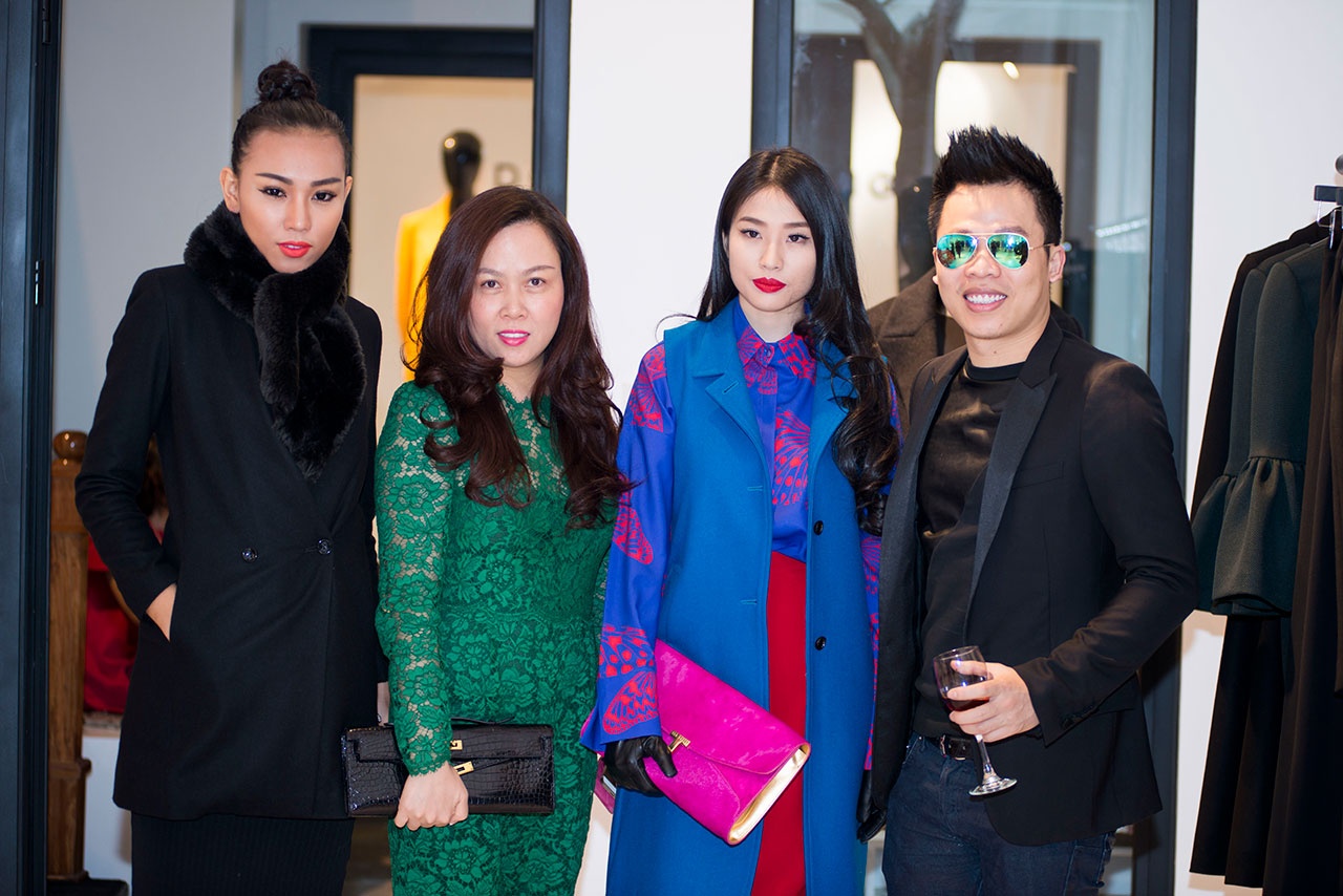 Dàn người đẹp đình đám gắn liền với thương hiệu Đỗ Mạnh Cường nổi bật trong trang phục thu đông thuộc BST ''Những cánh bướm cuối thu'' khi đến chúc mừng anh ra mắt chi nhánh mới.