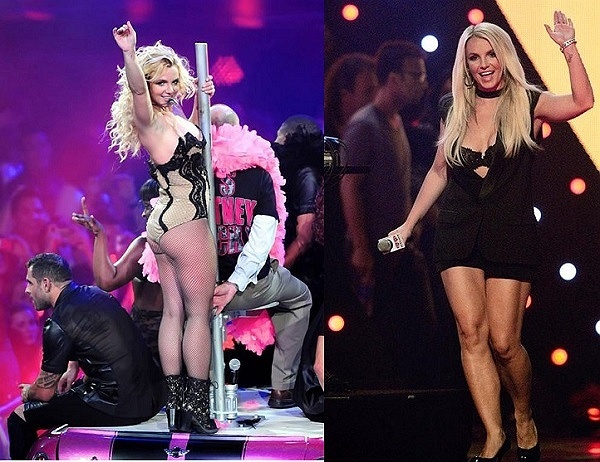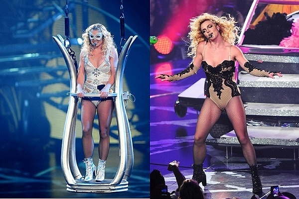 | "Công chúa nhạc pop" Britney Spears hiếm khi diện váy lên sân khấu, vì thế mà bộ đùi ếch của cô to nhỏ thế nào khán giả đều biết hết. |
