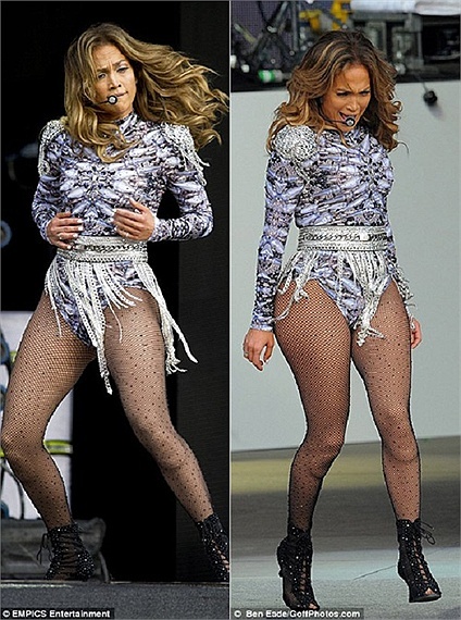 | Jennifer Lopez khoe đùi to đã trở thành phong cách quen thuộc. |