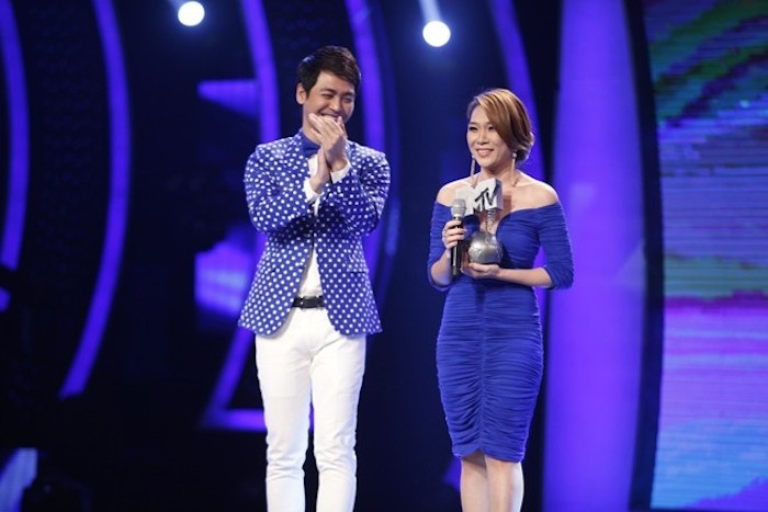Mỹ Tâm rạng rỡ nhận giải thưởng Best Music Video của kênh MTV.
