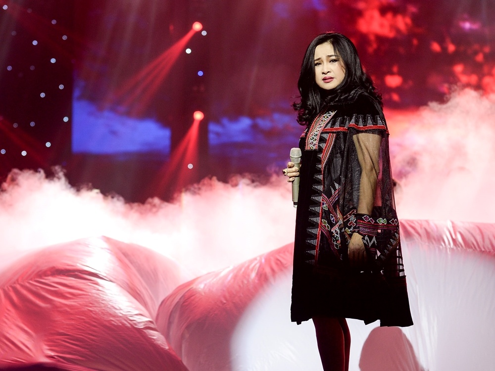 Mỹ Linh thăng hoa với Trên đỉnh Phù Vân. Mỗi lần thể hiện ca khúc này, người ta lại thấy cô nhập tâm như "lên đồng". |