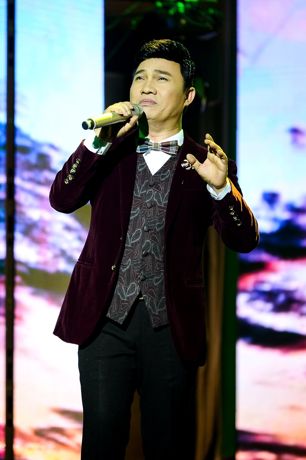 | Giọng ca Quang Linh sau hàng chục năm vẫn không hề có dấu hiệu xuống sức.Thể hiện Quê hương tuổi thơ tôi, nam ca sĩ như đưa người nghe vào không gian đầy màu sắc nhưng vẫn bình dị. |