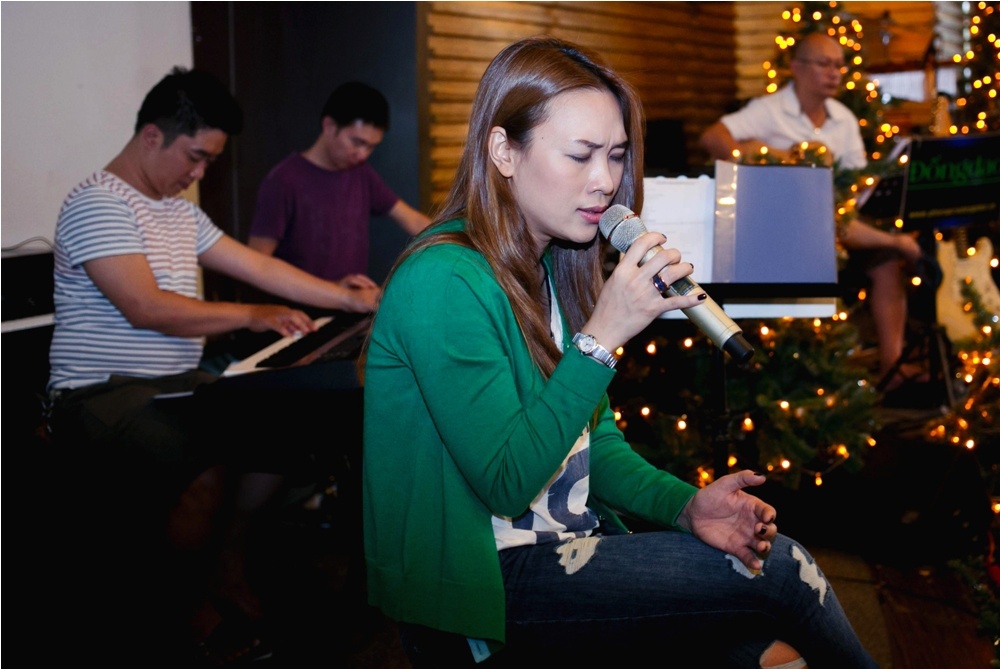 | Dù chưa phải trình diễn nhưng nữ ca sĩ vẫn đặt trọn cảm xúc của mình trong từng bài hát. |