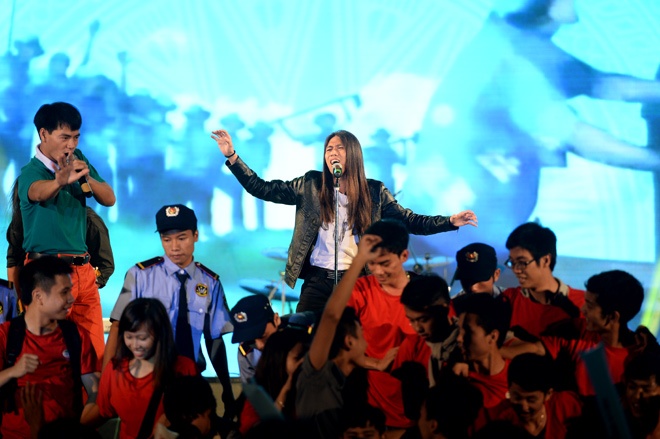 Trong chương trình "Tôi là sinh viên 2013" diễn ra tối qua tại Đà Nẵng, "họa mi tóc nâu" khiến sân khấu với hơn 10.000 bạn trẻ bùng nổ cùng ca khúc cách mạng "Lên đàng".