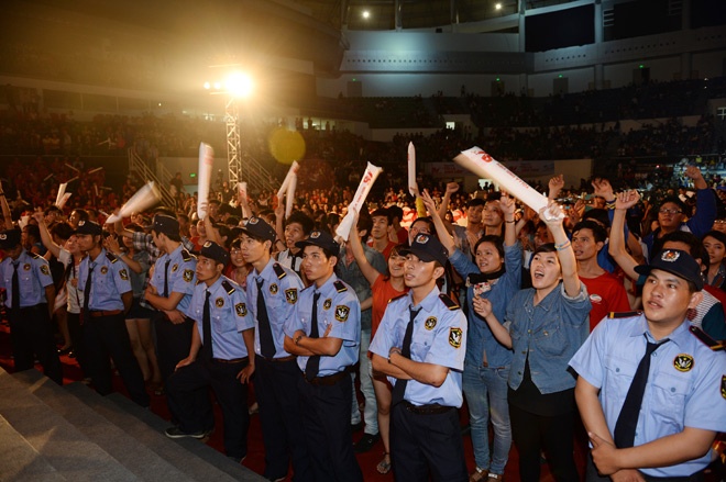 Lực lượng an ninh bảo vệ cũng mải mê xem các tiết mục hát của "Tôi là sinh viên 2013".