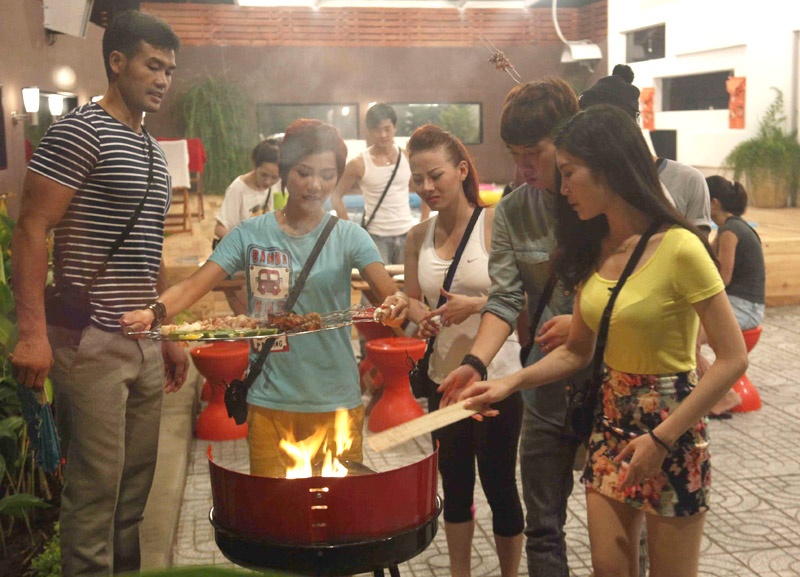 | 12 người chơi đã có một bữa thịt nướng ngoài trời vui vẻ và no bụng. Các cô gái lo phần bếp núc còn các chàng trai là người rửa bát đĩa. |