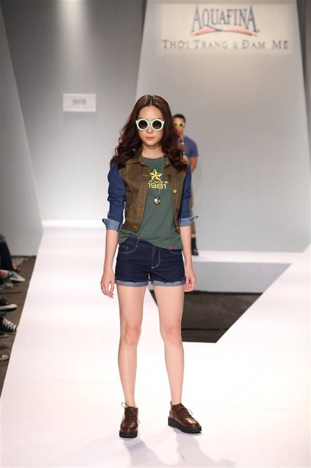 Nữ ca sĩ đóng vai trò kết màn khi trình làng BST mùa thu mới. Đây là lần đầu tiên cô đưa mẫu thiết kế của mình lên sàn diễn thời trang chuyên nghiệp.