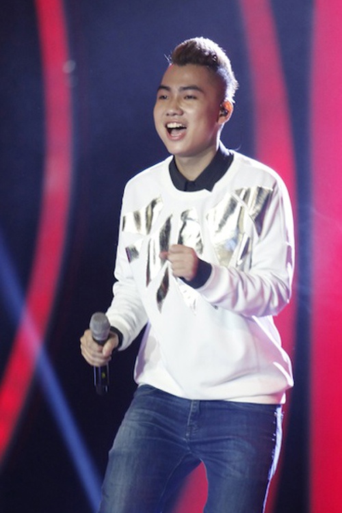 | Tiến Việt thể hiện Locked out of heaven trên sân khấu Vietnam Idol. |