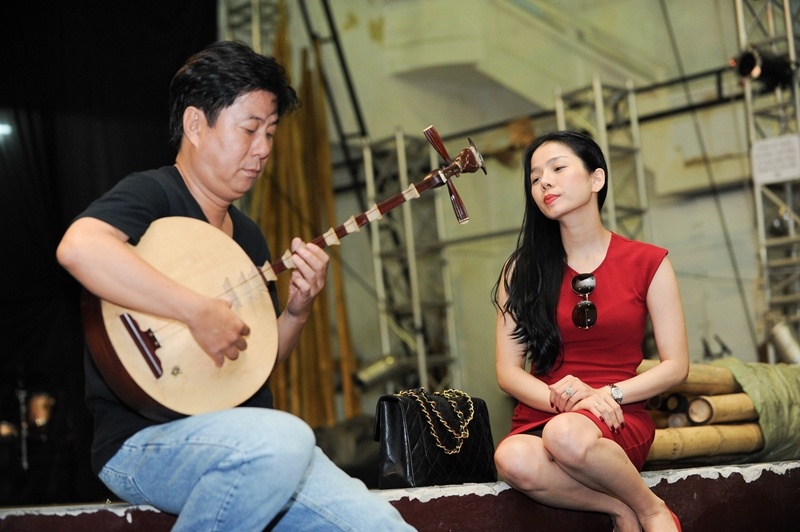 | Với sáng tác này, nhạc sĩ Đức Trí gần như "đo ni đóng giày" cho giọng hát của Mỹ Tâm. Trong buổi tập, những quãng ngân và tình cảm mà nữ ca sĩ đặt vào ca khúc cũng khiến nhiều người cảm động. Trong phút cao hứng, Mỹ Tâm còn mượn cây đàn nguyệt được Lệ Quyên sử dụng cho tiết mục của mình để chơi thử. |