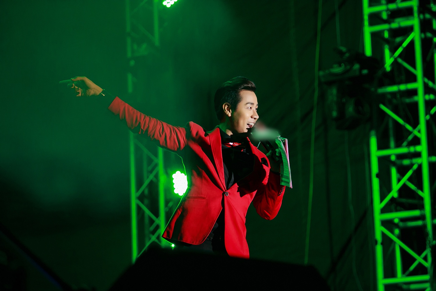 Á quân Vietnam Idol liên tục biến hóa với các phong cách âm nhạc khác nhau khi biểu diễn tại khu vực chợ Đồng Xuân tối cuối năm.