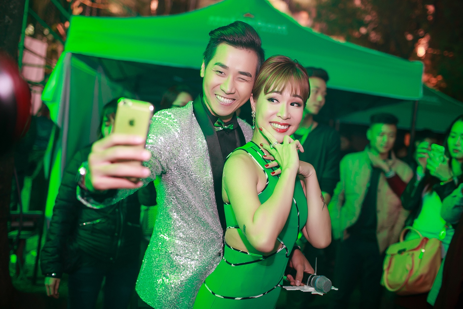 | Trước khi lên sân khấu biểu diễn, Thần tượng âm nhạc Việt Nam 2010 còn nhí nhảnh sefie cùng MC Nguyên Khang. |