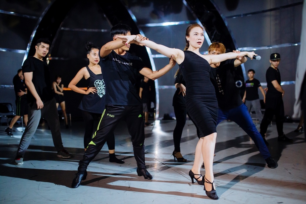 Sáng tác mới toanh của Mỹ Tâm chưa phát hành bản audio nhưng cô muốn mang đến bất ngờ cho người hâm mộ. Hiện tại, người nghe chuộng nhạc EDM nhưng bản thân nữ ca sĩ muốn làm gì đó khác biệt bằng việc thể hiện ca khúc mang âm hưởng cổ điển. Trong ảnh, giọng ca Gửi tình yêu của em trao đổi cùng biên đạo Hani Abaza trước khi bước lên sàn tập. |