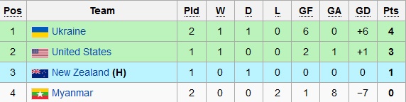 | Vị trí của các đội ở bảng A giải U20 World Cup diễn ra tại New Zealand. |