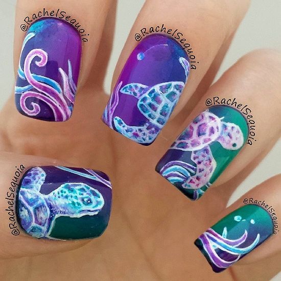 | Những chú rùa của biển xanh xuất hiện đầy nghệ thuật trên đôi bàn tay xinh xắn của bạn. |