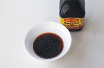 Đầu tiên, bạn cho xì dầu và đường vào bát rồi khuấy đều cho đường tan hẳn.