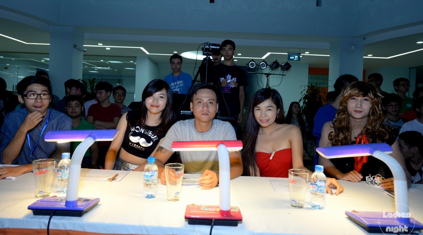 Ban giám khảo là các thầy cô giáo trong trường và nguyên "hoa khôi" của Ladies by night 2013 Trần Hải Đăng. Trong đêm hội, Đăng vẫn tiếp tục hóa thân trong hình ảnh một quán quân xinh đẹp, rạng rỡ. |