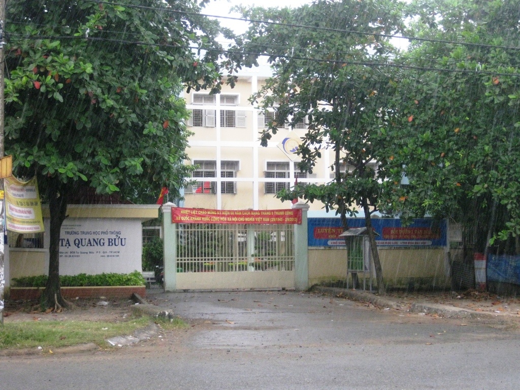 | Cổng trường THPT Tạ Quang Bửu, nơi xảy ra vụ truy sát. |
