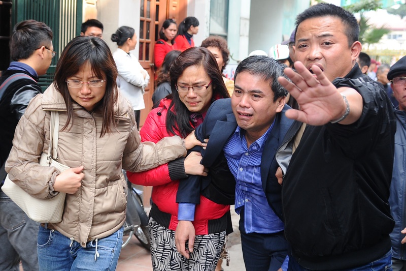 | Gia đình nạn nhân khóc lóc khi nghe tin vụ việc. Ảnh: Quang Trung. |