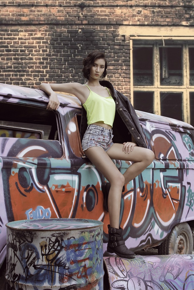 Trước khi bước vào thử thách của tập 6, 11 chàng trai cô gái ''Vietnam's Next Top Model'' có buổi chụp hình chung với phong cách thời trang đường phố bụi bặm.