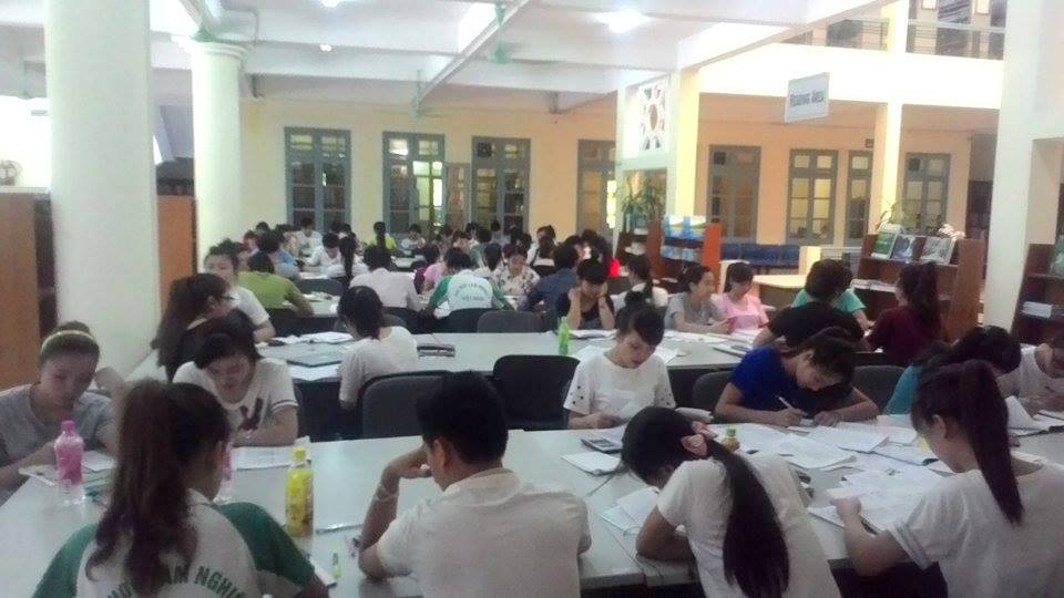 | Sinh viên Đại học Lâm nghiệp chọn thư viện làm nơi tránh nóng. Ảnh: NVCC. |