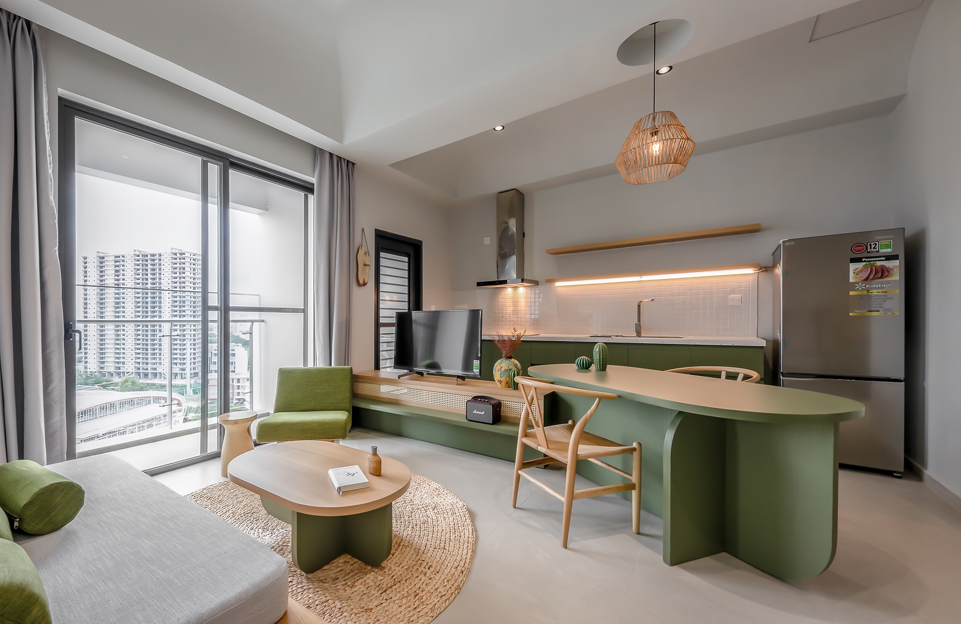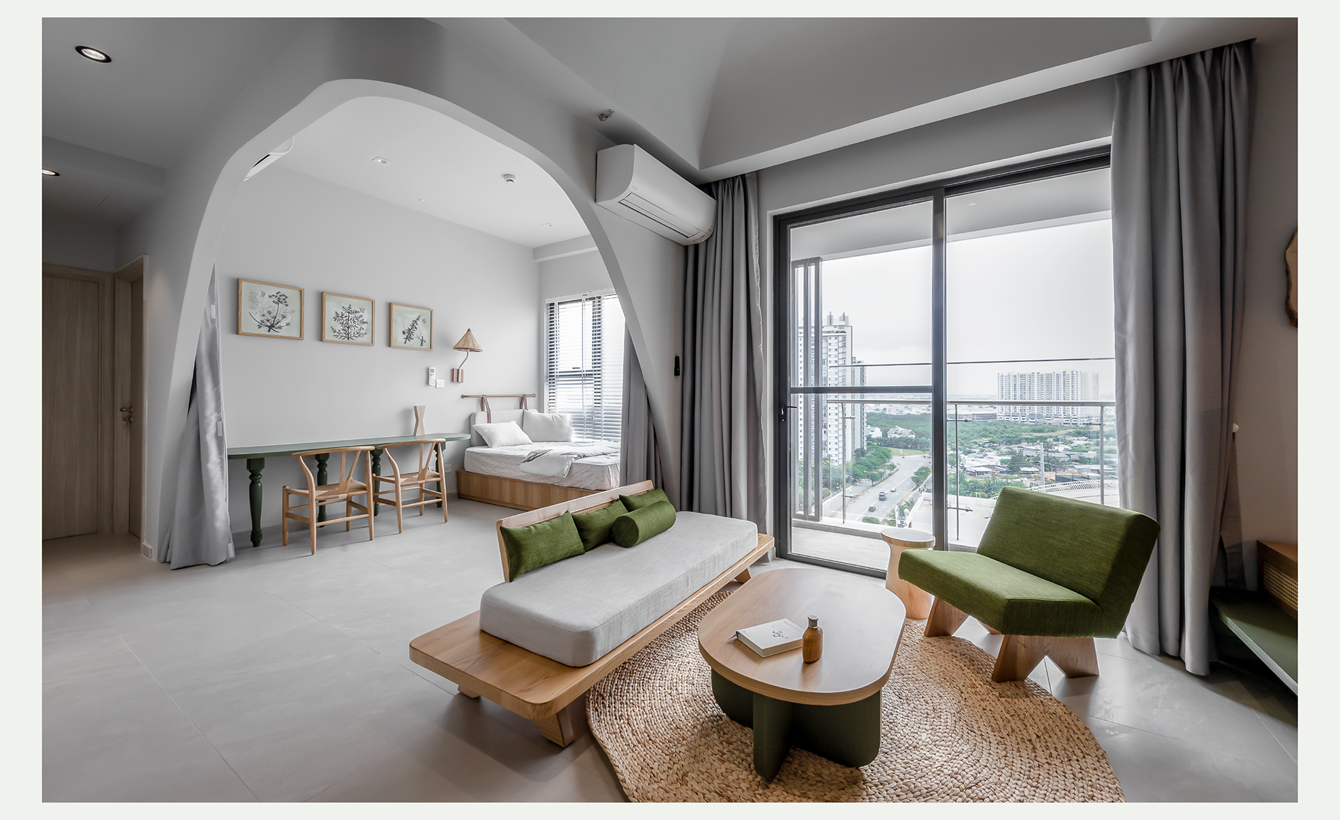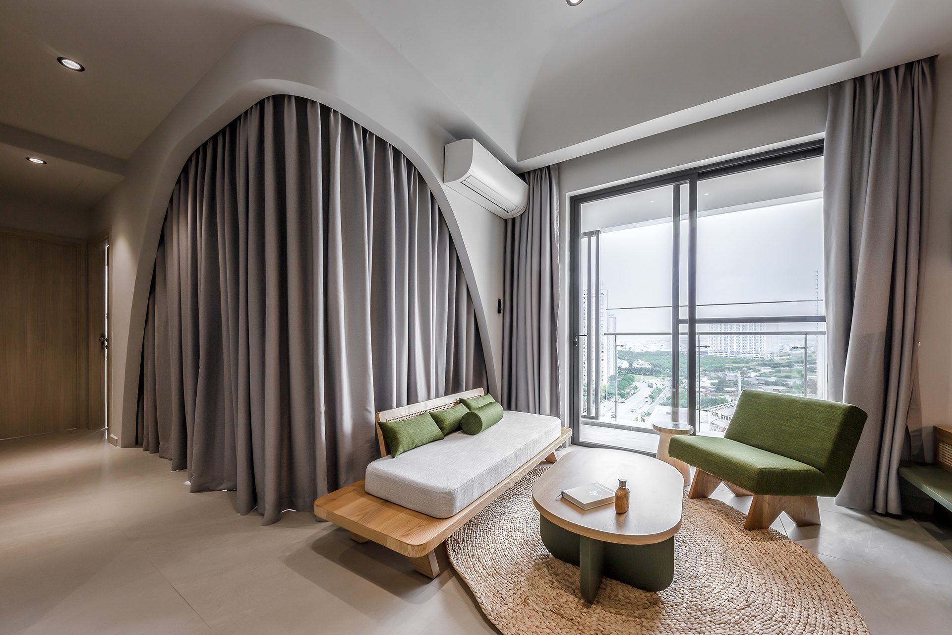 Như tên gọi Oval of greeney, kiến trúc sư chính Nguyễn Đắc Anh Quân (1989) muốn đem đến một không gian thật tươi mát và thoáng đãng cho căn hộ.