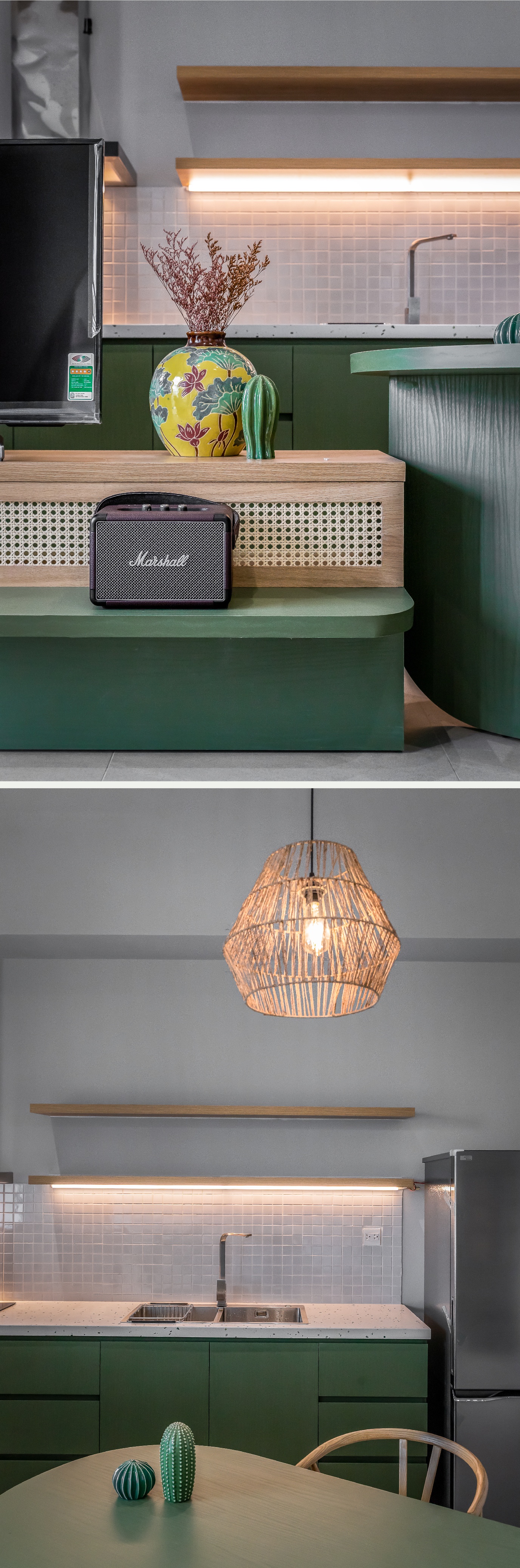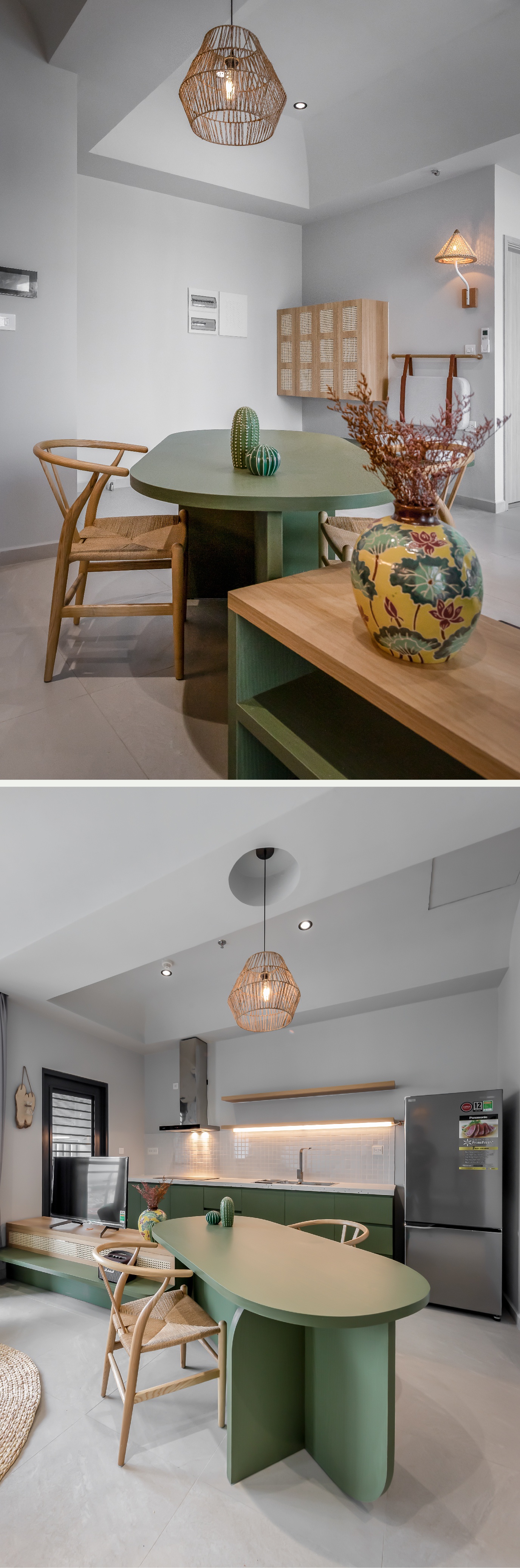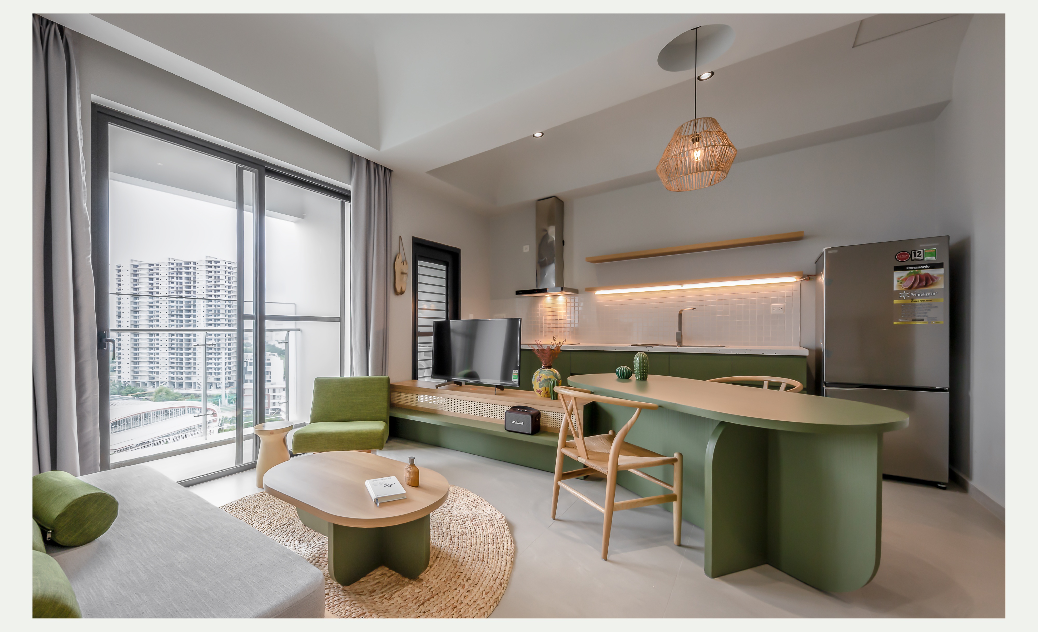 Như tên gọi Oval of greeney, kiến trúc sư chính Nguyễn Đắc Anh Quân (1989) muốn đem đến một không gian thật tươi mát và thoáng đãng cho căn hộ.