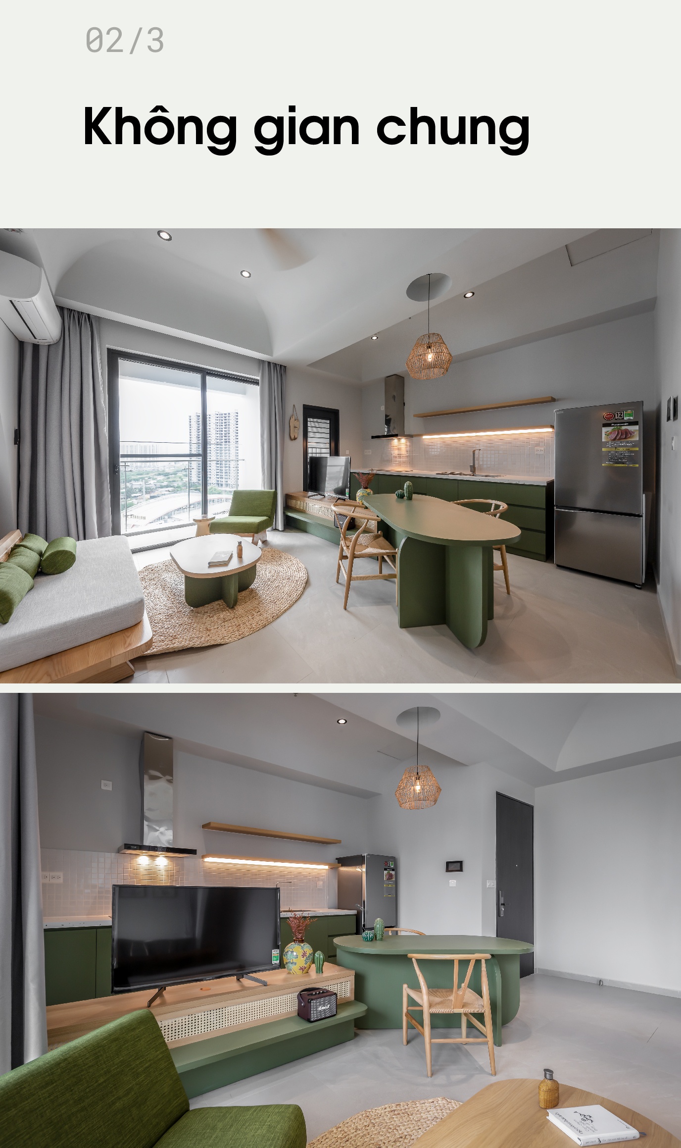 Kết hợp những điều này, chủ căn hộ nhận được một tổng thể thoáng đãng, đơn giản nhưng không sơ sài. Đảm bảo tận dụng được tất cả không gian sử dụng cho gia chủ.