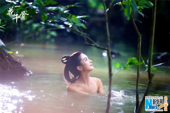 Sau khi tung ra loạt trailer bản tiếng Trung và tiếng Anh hé lộ nhiều hình ảnh của Triệu Lệ Dĩnh, mới đây đoàn làm phim Hoa Thiên Cốt lại tung loạt ảnh mới đẹp mê hồn của nữ diễn viên này. Giữa không gian huyền ảo, thơ mộng, nàng Sam Sam có dịp khoe lưng trần trắng mịn trong cảnh tắm tiên.