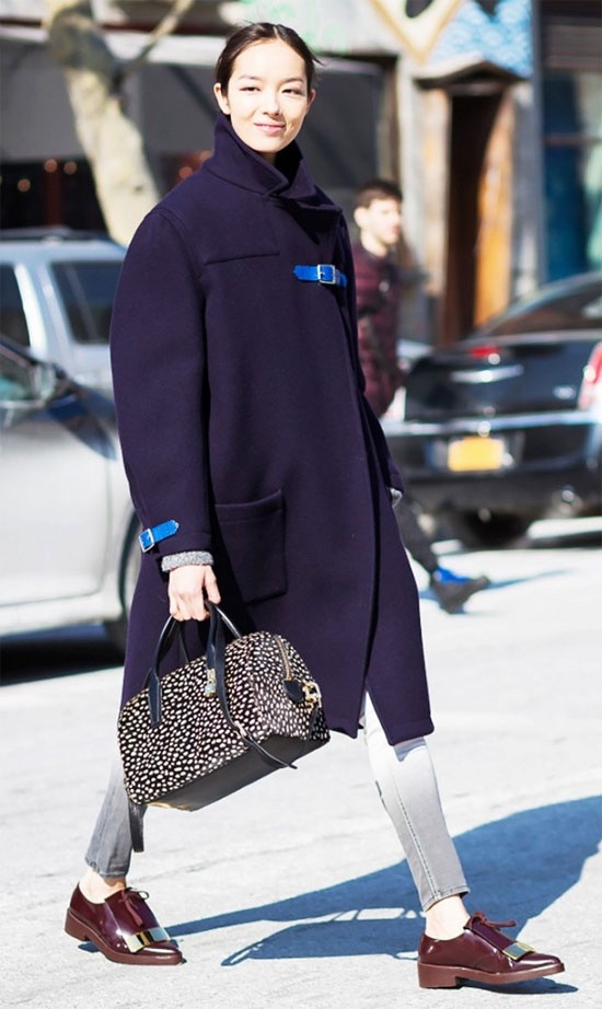 Nếu dáng người thanh mảnh, chiều cao lý tưởng, bạn chỉ cần chọn quần skinny jeans, áo choàng dáng rộng và giày loafer cũng đủ làm mình gây chú ý mạnh mẽ khi ra phố.