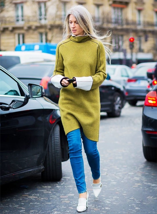 Quần skinny jeans và áo len chùm dáng dài là những item tuyệt vời giúp bạn "chất" hơn hẳn.
