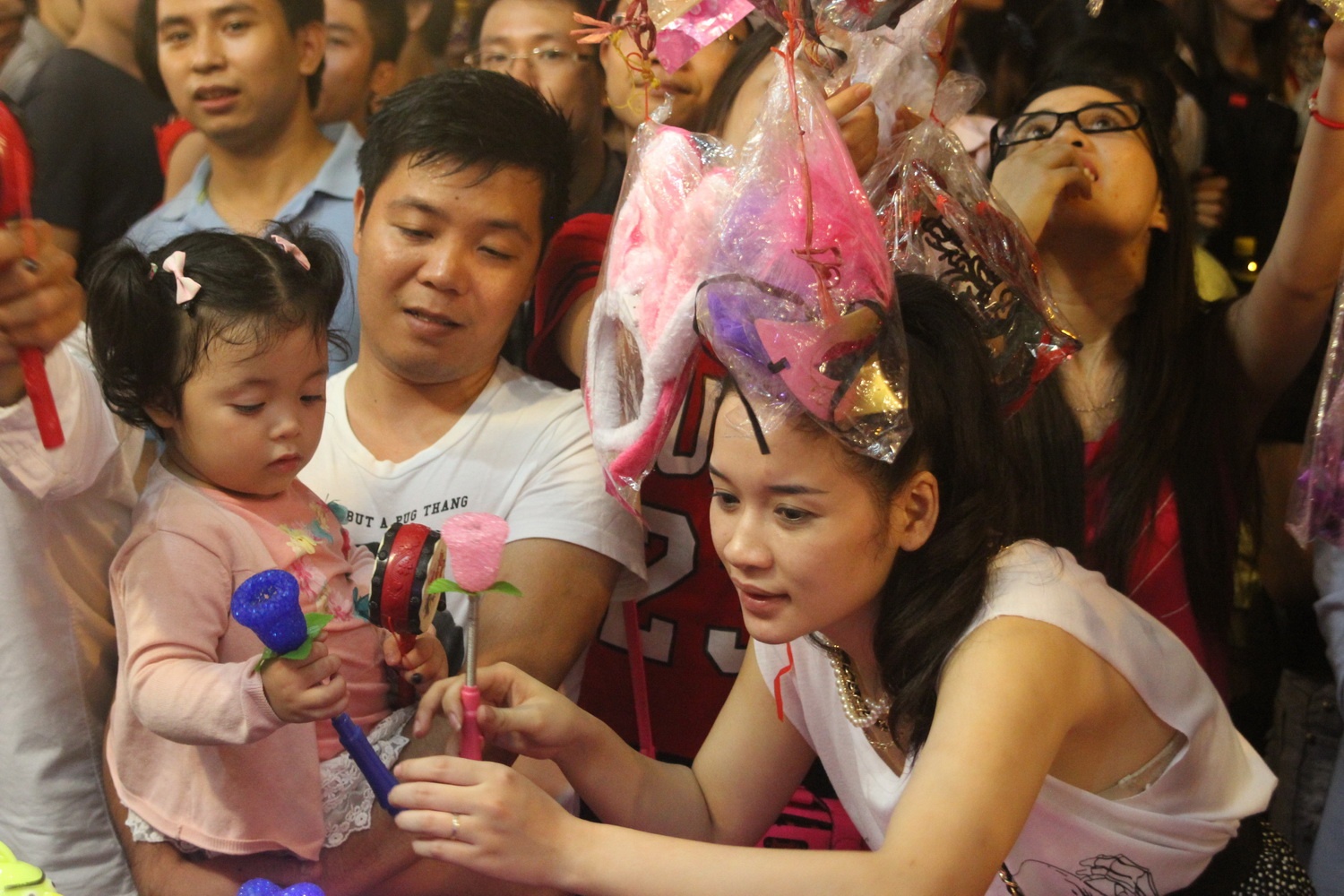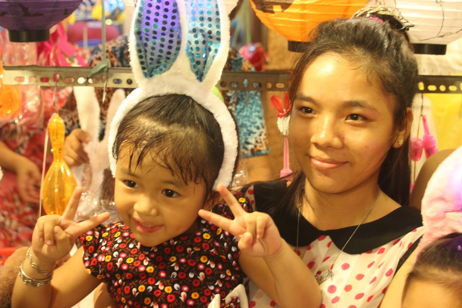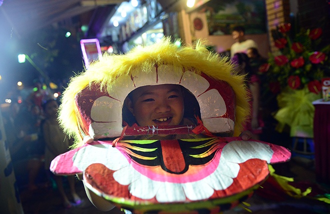 | Mặc dù mồ hôi nhễ nhại làm ướt cả tóc và mệt nhưng cô bé này vẫn cười tươi làm dáng chụp hình. Một kỷ niệm Trung thu thật khó quên đối với bé. |