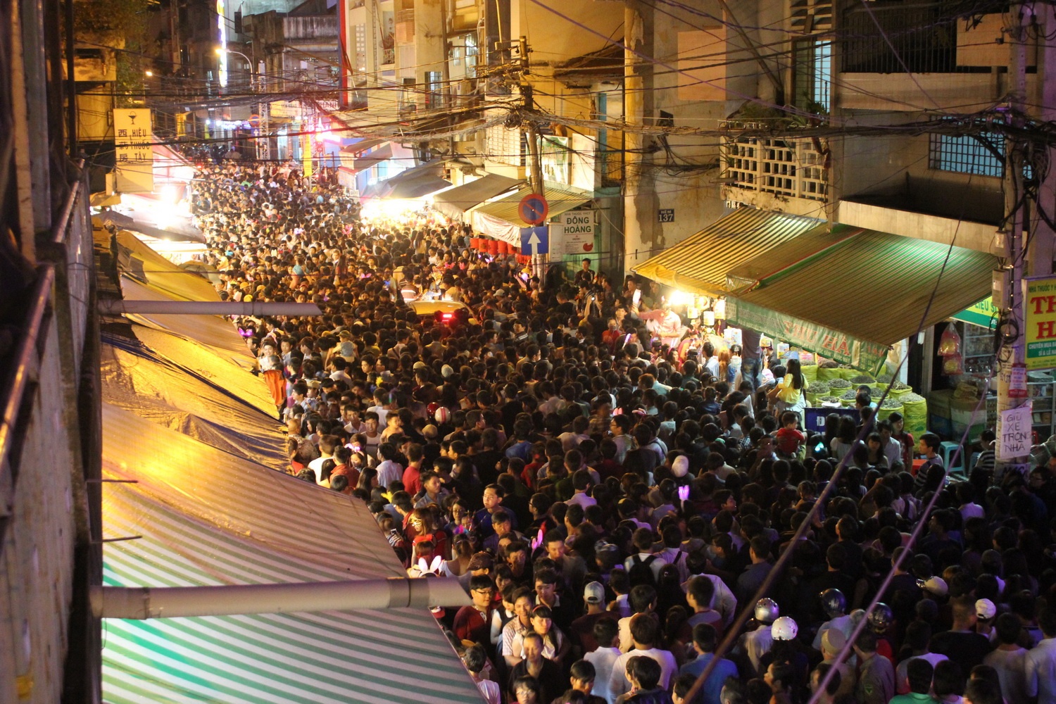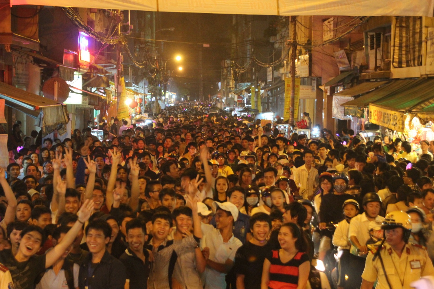| Trong khi đó, ở Sài Gòn, sau khi gửi xe ở các con đường gần khu vực phố đèn lồng, hàng ngàn người đổ về tham quan con phố đủ sắc màu Lương Nhữ Học. |