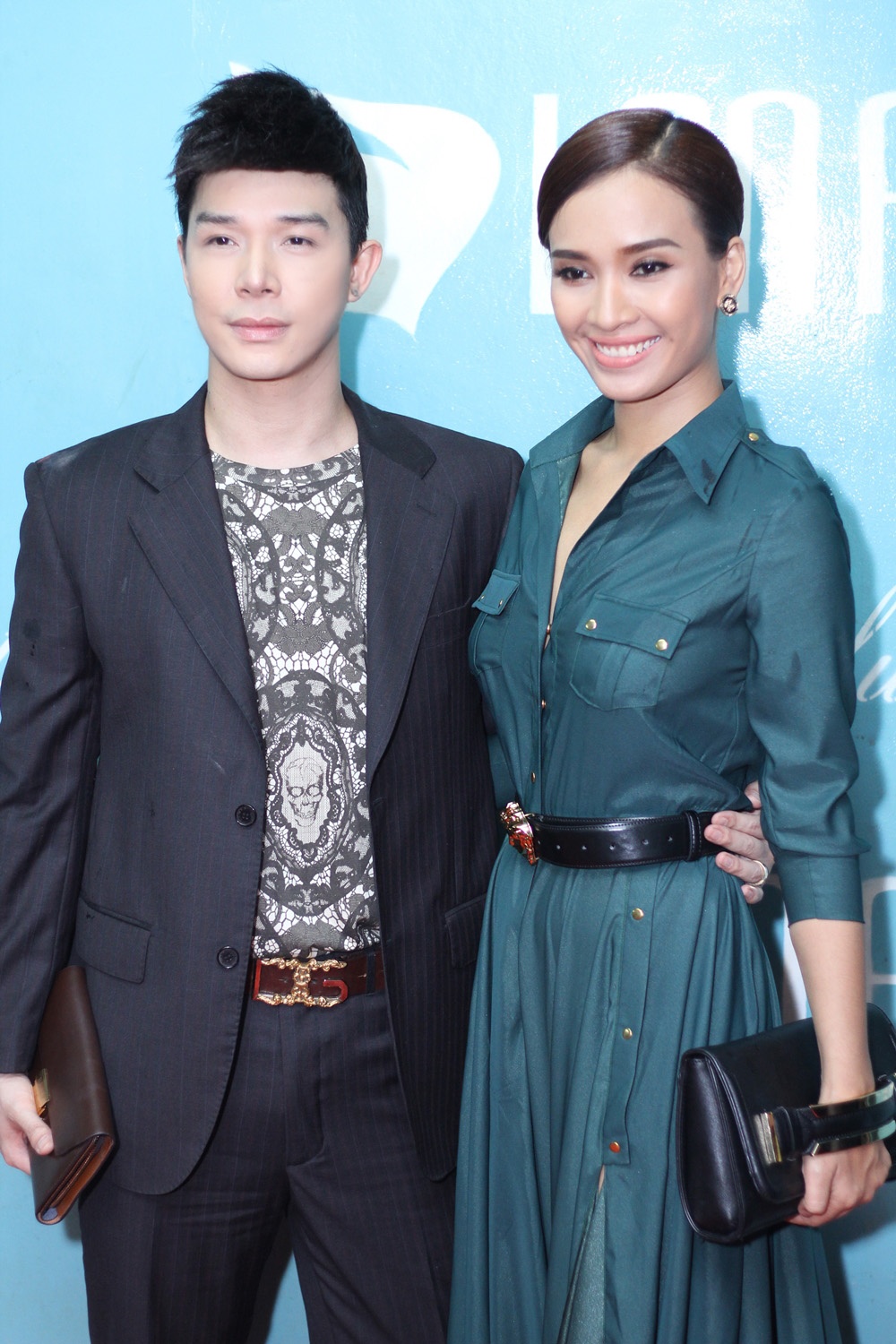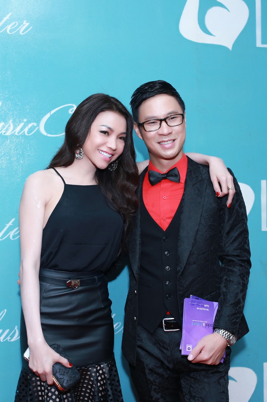 | Nữ ca sĩ - người mẫu mặc gợi cảm, chụp ảnh cùng đàn anh. MC Anh Quân giữ vai trò dẫn dắt tại sự kiện. |