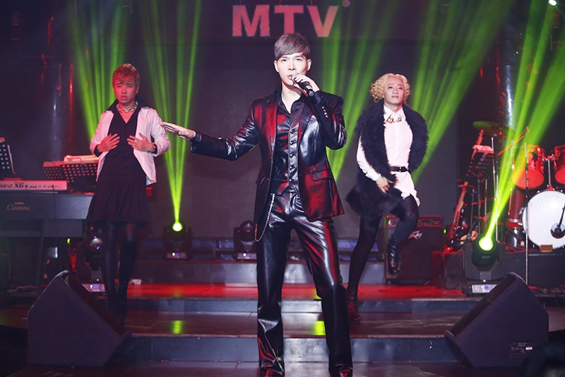 Khác với vẻ lịch lãm trong cuộc thi Chinh phục đỉnh cao, nam ca sĩ không ngại thể hiện vũ đạo rất sung cùng vũ đoàn của mình, khuấy động không khí trong khán phòng.