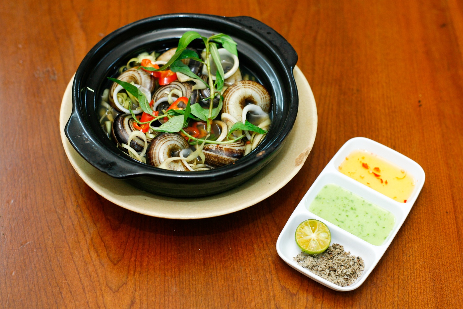 | Ốc núi hấp sả với cái ngon lạ của phần thịt cùng vị ngọt thanh của nước dùng. |