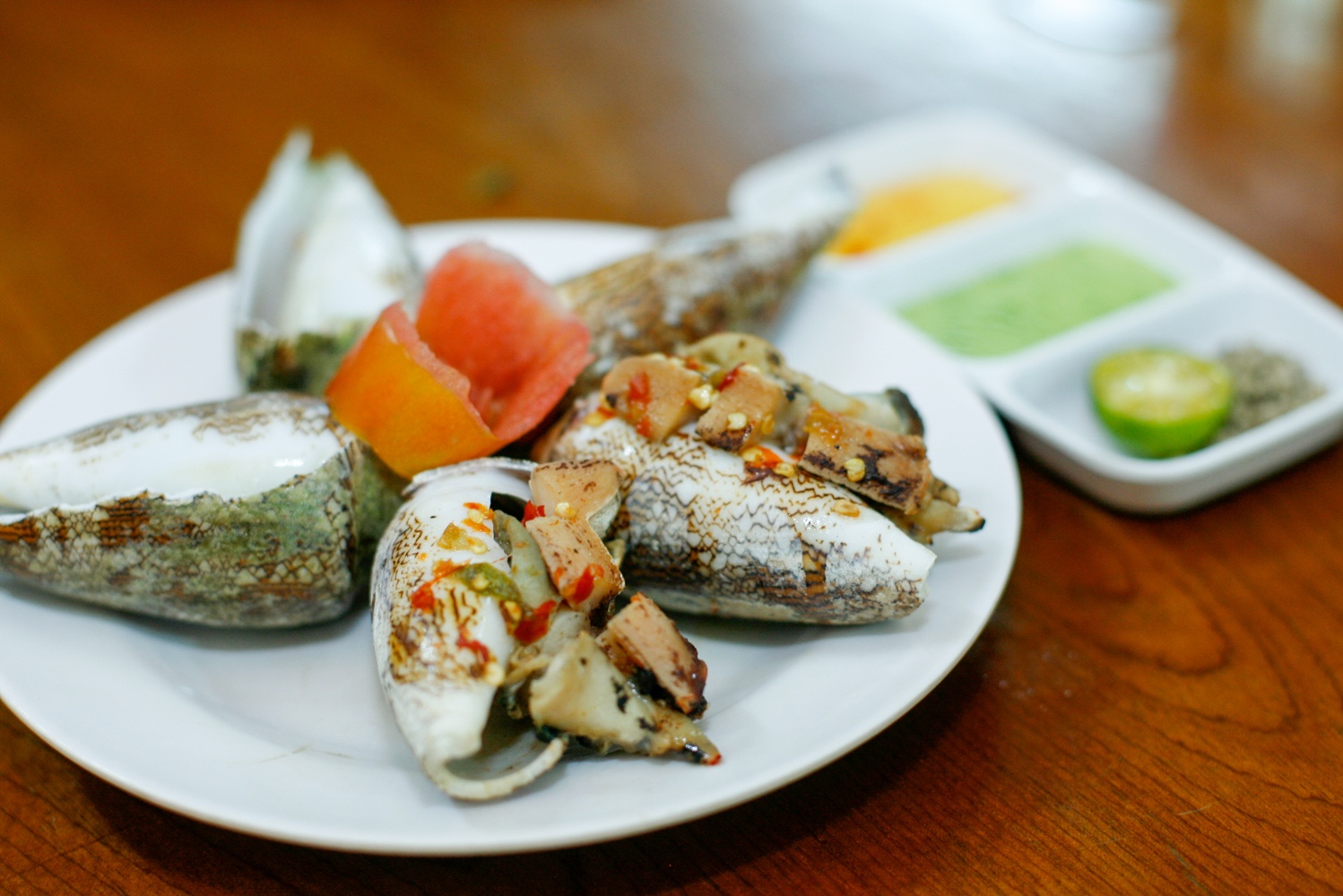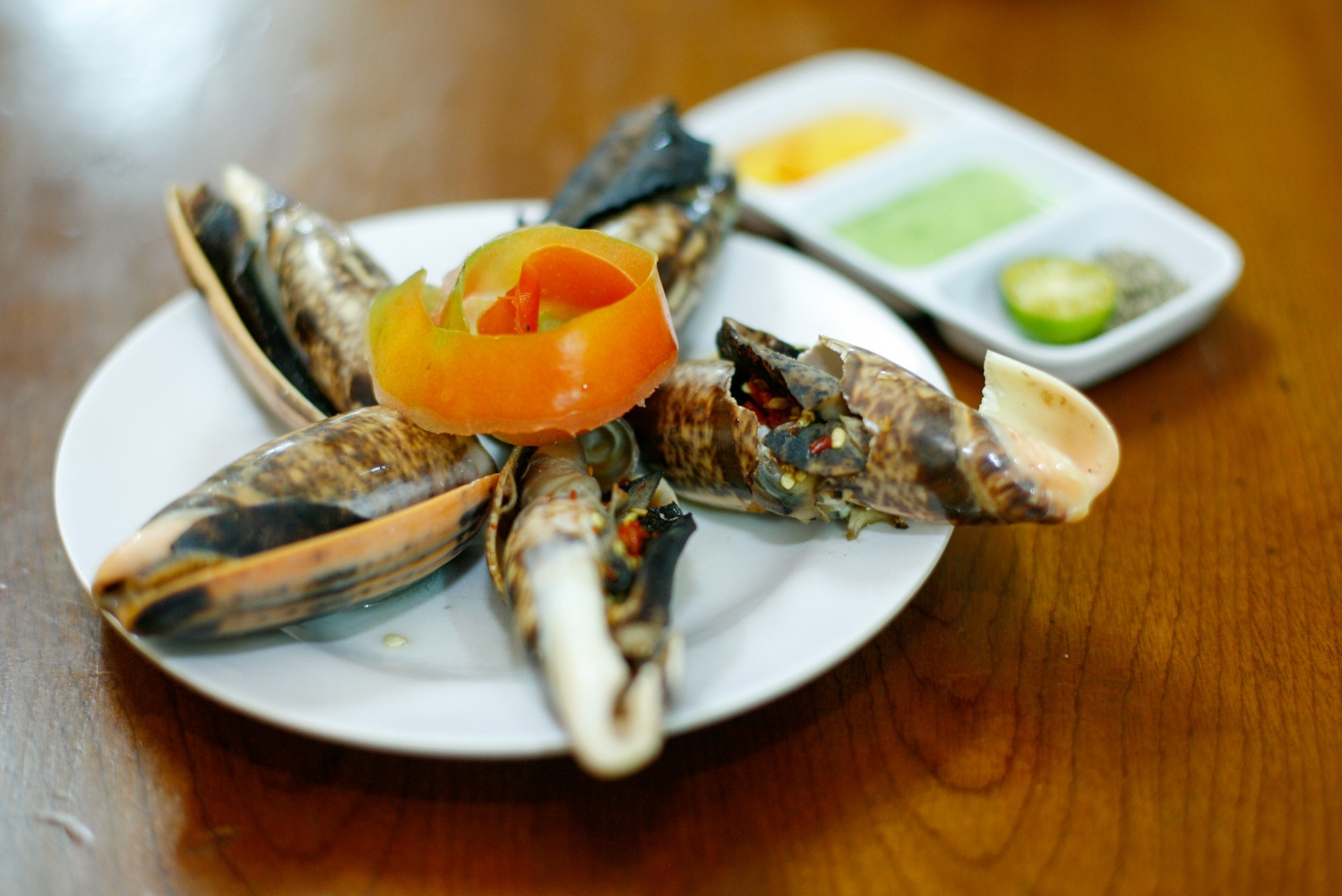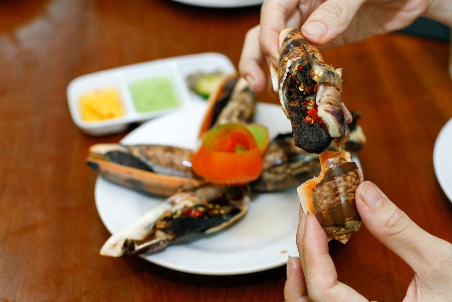 Nếu thích đầy đặn, bạn có thể chọn ốc chuối (tên gọi xuất phát từ việc phần thịt ốc lồi ra khỏi cả vỏ có tạo hình khá giống trái chuối). Không chỉ nhiều đến tràn ra bên ngoài, thịt ốc chuối còn dòn, ngọt hơn cả thịt ốc giác song không dai như loại ốc này.