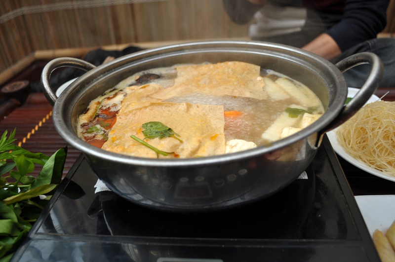 luôn có kèm ít váng đậu, khoai môn đã bỏ sẵn trong nồi...