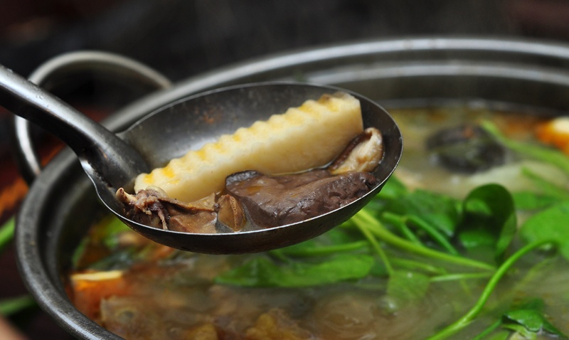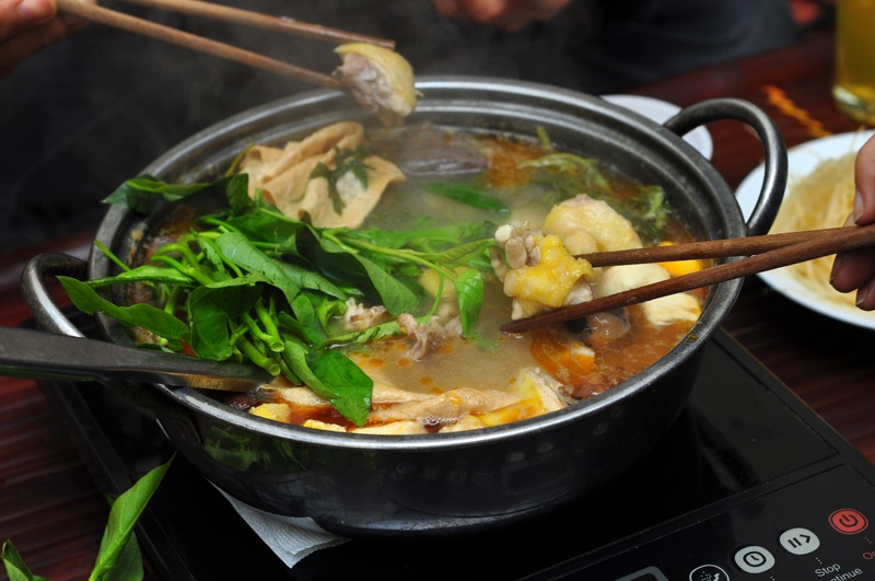 Chủ quán thường khuyên khách cứ đổ hết đĩa thịt vào nồi, như thế cho ngọt nước và gà ngon nên đun lâu không sợ nát hay bã. Quả vậy, không cần chọn miếng đùi, ngay cả với miếng lườn “trắng ởn”, nhiều người ăn rồi vẫn phải gật gù “Thế này mới là gà ta xịn chứ!”. Còn tất nhiên, nếu "ăn khôn", nhanh tay gắp phần thịt nâu nâu, đen đen thì đúng là “cắn đến đâu sướng miệng đến đó”, nhất là trong thời tiết rét mướt đang lúc đói lòng, miếng thịt gà nóng hổi, vừa thổi vừa ăn là vậy nhưng làm khách không thể ngơi miệng, ngơi tay.