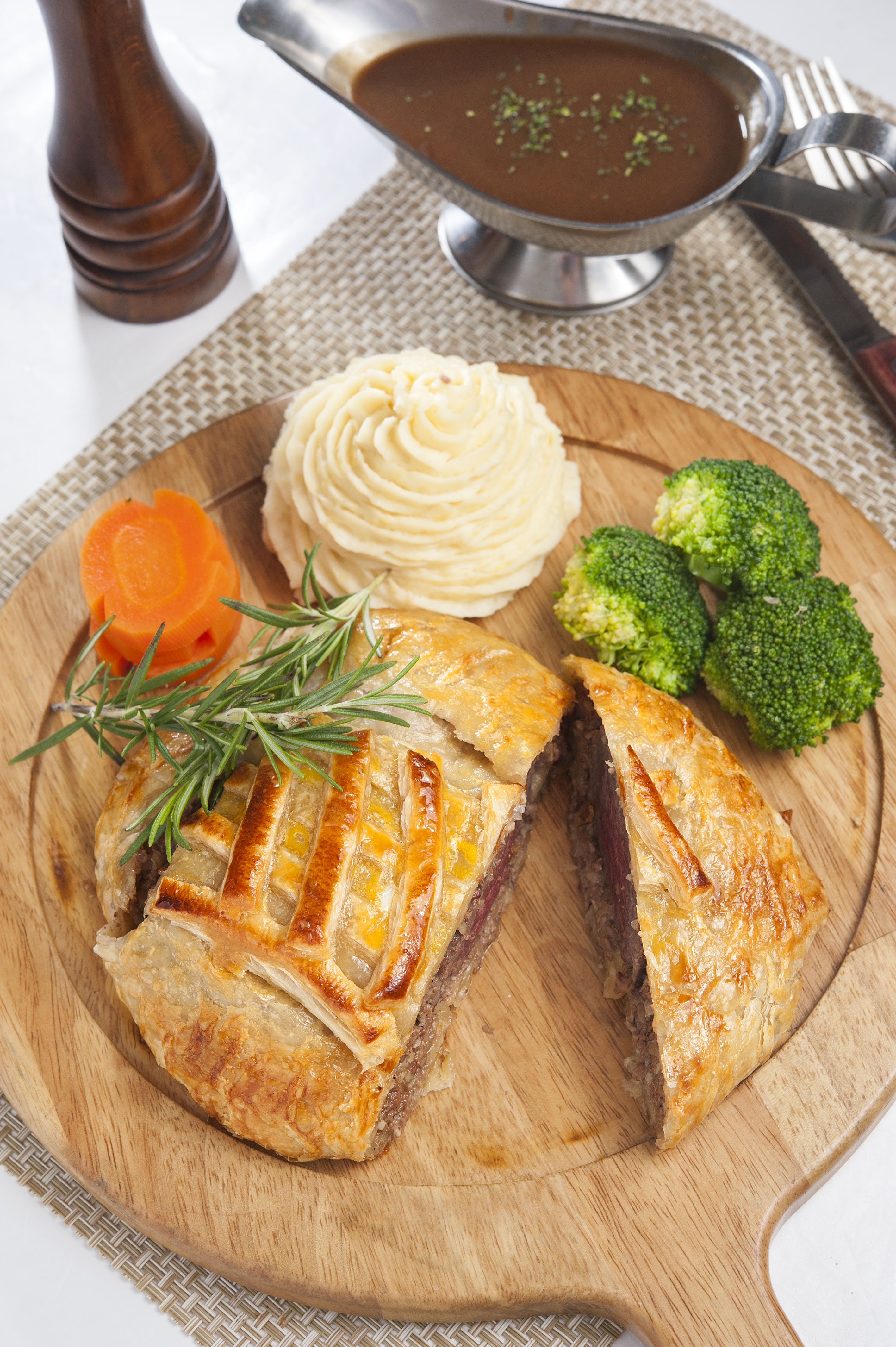 Đây không phải là bánh pate choux mà là bò Wellington, món ăn truyền thống của người Anh thường có mặt trong các buổi tiệc gia đình hay thay thế gà Tây trong đêm Giáng sinh. Có hai tranh luận về nguồn gốc của của cái tên này. Một là nó được đặt theo tên của công tước Wellington. Hai là gắn với thủ đô Wellington của New Zealand. |