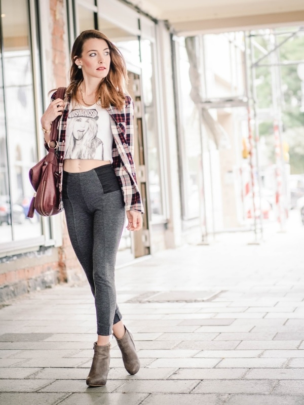 Nên: Quần legging phối với áo sweater oversize và dáng dài. Bằng chất liệu len hay cotton dày phối cùng quần legging, thêm một chiếc áo khoác và bốt cao cổ sẽ là set đồ lý tưởng cho mùa thu đông. |