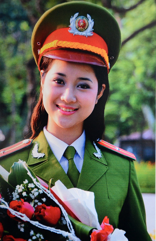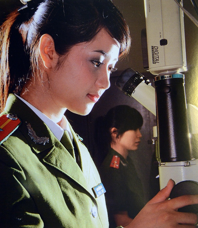 | Nữ chiến sĩ cảnh sát xinh đẹp trong tác phẩm "Trong phòng xét nghiệm" của Lại Hiển |