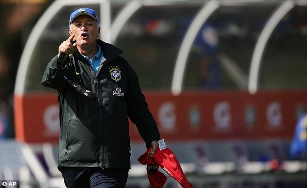 | HLV Scolari chỉ đạo học trò thực hiện các bài tập đá phạt, luyện thể lực và phối hợp. |
