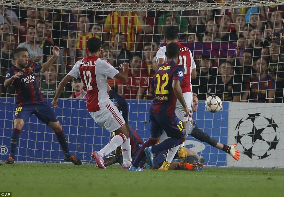 | Sau khi Neymar, Messi và Iniesta ra sân giữa hiệp 2, Barca đã đánh mất thế trận. Nhờ đó Ajax mới có bàn thu hẹp khoảng cách xuống 1-2 ở phút 89 sau cú sút của cầu thủ vào thay người El Ghazi. |