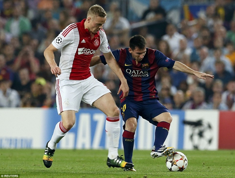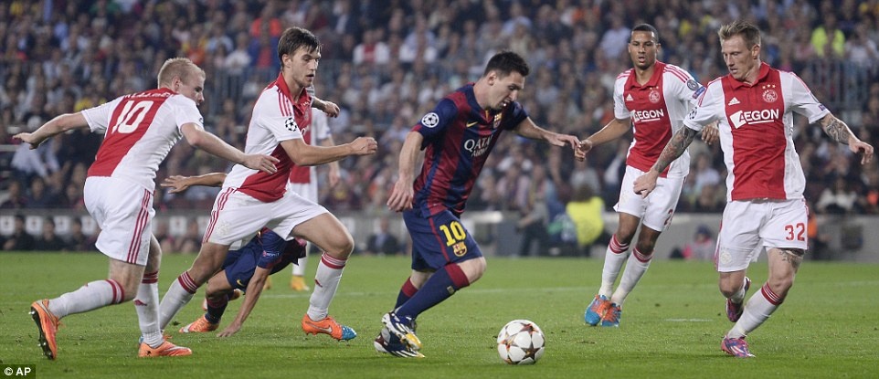 | Ngoài những pha đi bóng làm rối loạn hàng thủ Ajax, siêu sao người Argentina còn thường tung ra những đường chuyền và những cú sút rất nguy hiểm. |