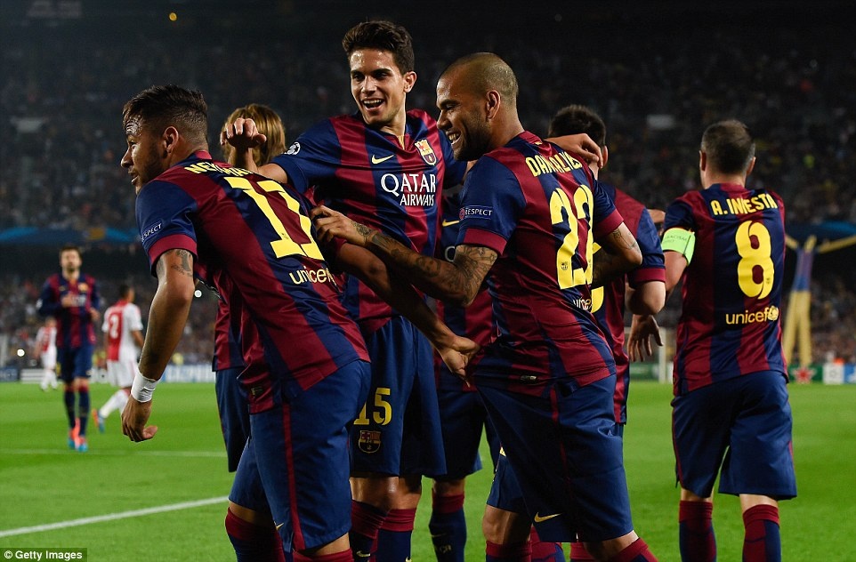 | Đội hình thi đấu: Barca: Ter Stegen, Alves, Pique, Bartra, Alba, Rakitic, Mascherano, Iniesta (Rafinha 76’), Pedro, Messi (El Haddadi 66’), Neymar (Ramirez 61’). Ajax: Cillessen, Van Rhijn, Veltman, Moisander, Viergever, Andersen, Zimling (Riedewald 56’), Klaassen, Schone, Sigthorsson (El Ghazi 73’), Kishna (Milik 45’). |