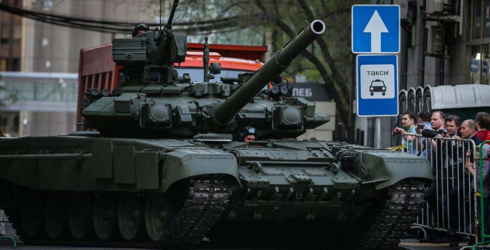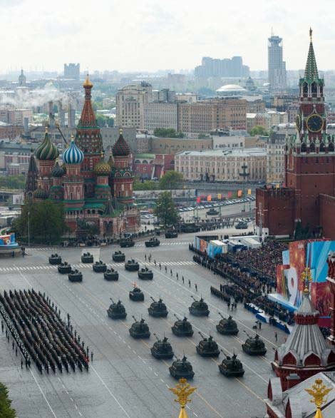 | 149 phương tiện quân sự như xe tăng, xe bọc thép sẽ tham gia lễ diễu hành vào ngày mai. Đây là số lượng phương tiện quân sự lớn nhất từng tham gia diễu hành trong Ngày Chiến thắng ở Nga từ năm 1991. Ảnh: Daily Mail |