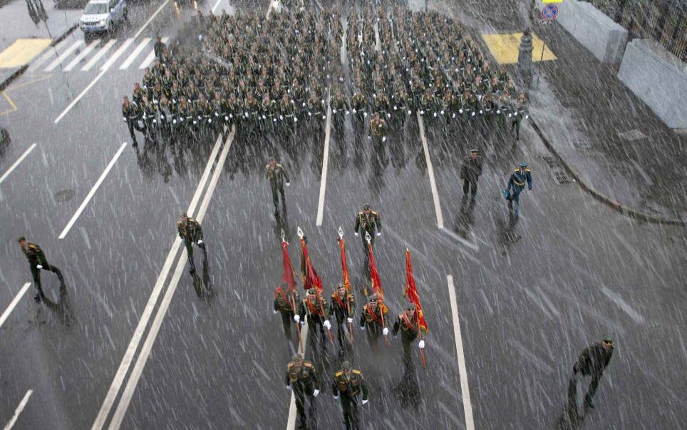| Binh sĩ Nga rầm rộ diễn tập chuẩn bị Ngày Chiến thắng phát xít tại Quảng trường Đỏ hôm 7/5. Hơn 11.000 binh sĩ tham gia buổi diễn tập. Ảnh: Reuters |