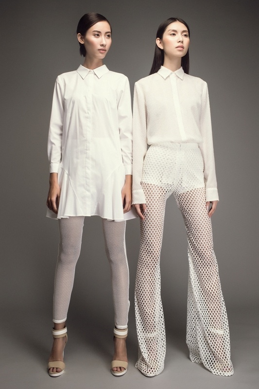 | NTK Huy Trần cũng cho thấy sự tài tình của anh trong cách dùng chất liệu, lưới mỏng được đan xen kết hợp cùng cotton, kaki một cách hài hòa. Tông màu trơn đồng bộ trắng được dùng lại mang đến hình ảnh thanh lịch, tinh tế cho các quý cô bước vào mùa thu đông. |